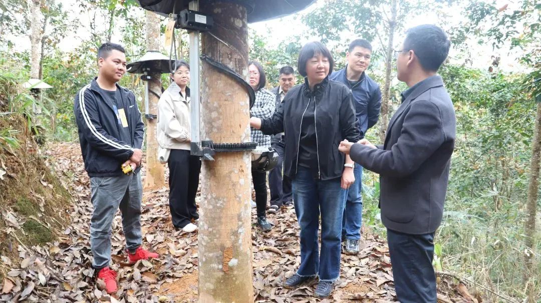 2月25日,省农垦局局长苏莉一行到云胶江城公司就特种胶园、标准化胶园建设与自动化机械化割胶技术应用开展调研并座谈。